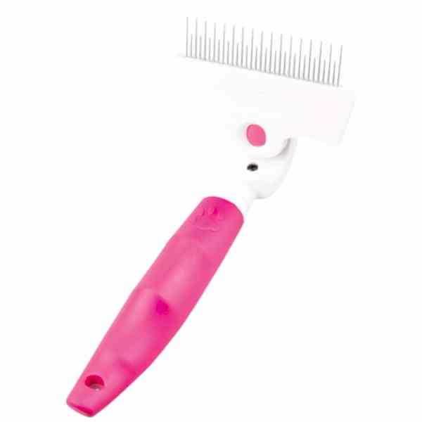 Расческа-грабли позволяет Pin-Up и безболезненно расчесать шерсть любой длины. Данная модель имеет кнопку, с помощью которой можно при необходимости снять насадку рабочей поверхности инструмента. Эргономичная ручка удобна в использовании.